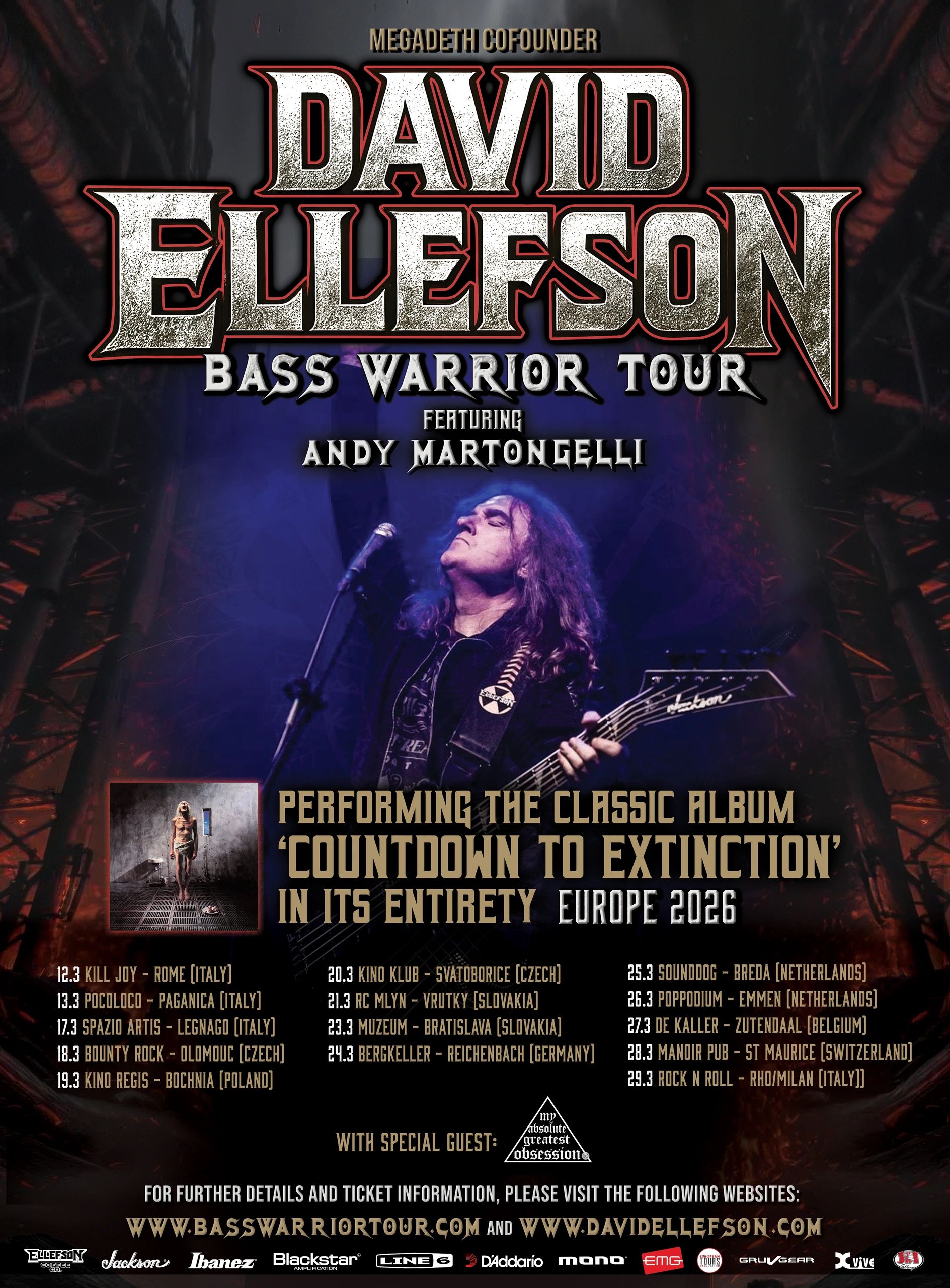 Ellefson states, "Bass Warrior has become an annual celebration with my fans across Europe. This year I'm really excited to be performing the 'Countdown to Extinction' album in its entirety on the tour. It's always been one of my favorite albums in my discography and I'm looking forward to celebrating those songs with my fans on the tour in March."